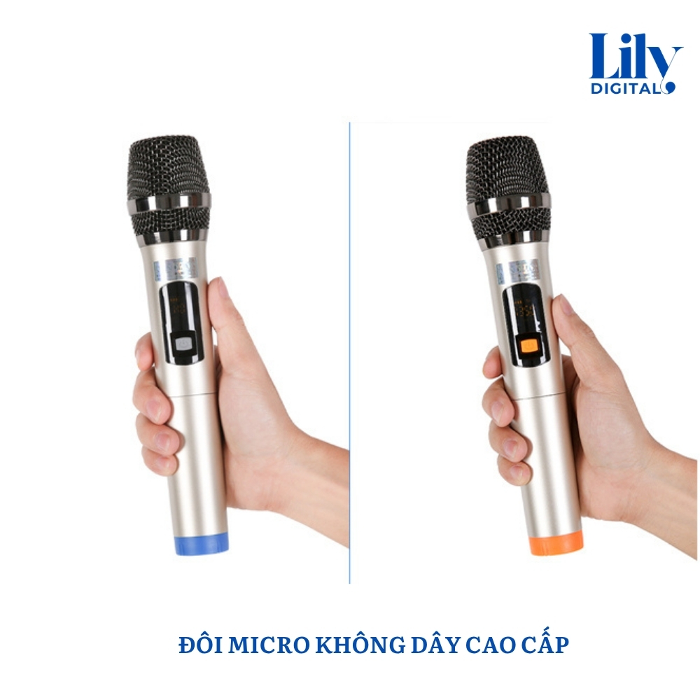 Loa hỗ trợ kết nối Bluetooth ổn định, đi kèm micro không dây tiện lợi, giúp người dùng dễ dàng sử dụng trong nhiều tình huống khác nhau mà không cần setup phức tạp.