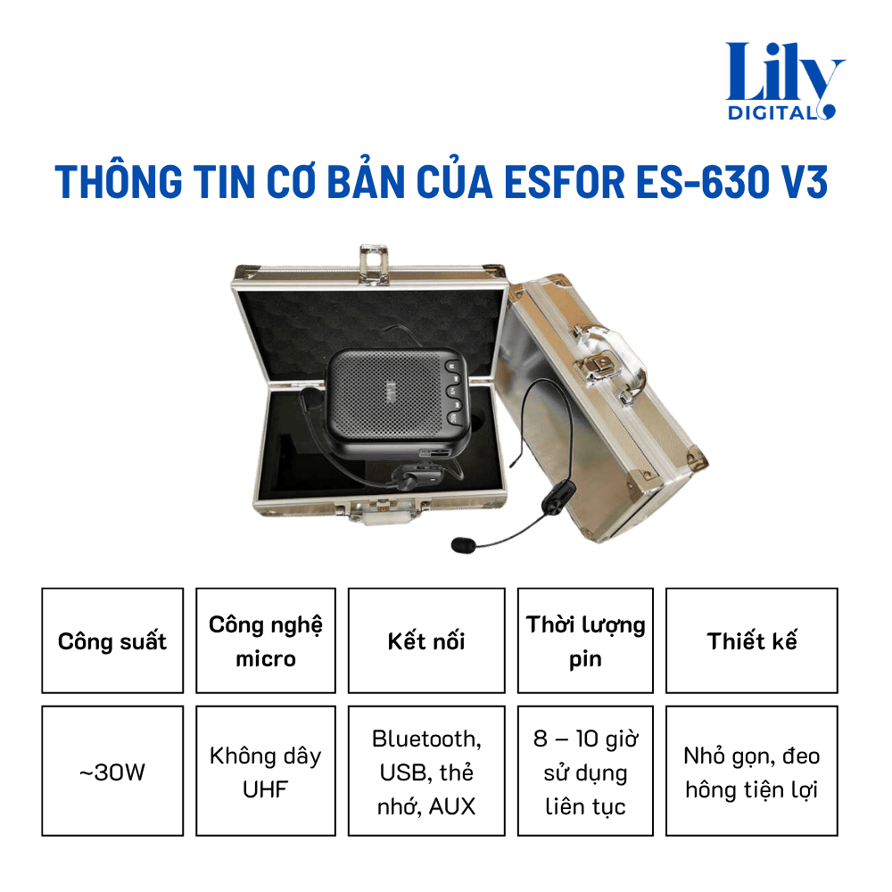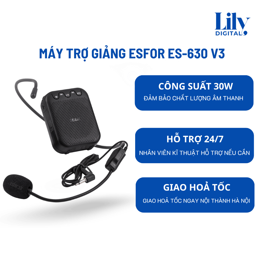 Bạn đang tìm kiếm máy trợ giảng ESFOR ES-630 V3 tại Hà Nội nhỏ gọn, âm thanh rõ nét và dễ sử dụng? Lily Digital mang đến giải pháp âm thanh di động tối ưu cho giảng dạy, thuyết trình và các sự kiện.