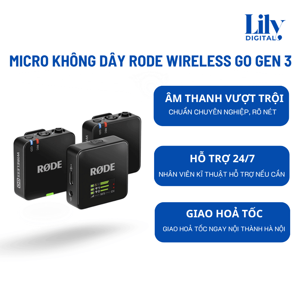 Nếu bạn đang tìm kiếm dịch vụ cho thuê RODE Wireless GO Gen 3 tại Hà Nội giá tốt, Lily Digital chính là giải pháp phù hợp. Với thiết bị hiện đại, hỗ trợ nhanh chóng và chi phí hợp lý, bạn hoàn toàn có thể yên tâm sử dụng cho quay video, livestream hoặc sản xuất nội dung.